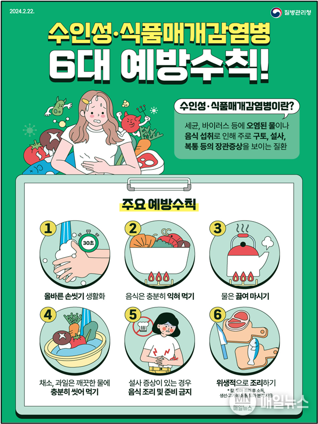 인천시는 명절 기간 가족 간 감염병 예방을 위해 ▲올바른 손 씻기 생활화 ▲음식 충분히 익혀 먹기 ▲물 끓여 마시기 ▲설사 증상 시 조리 금지 등 6대 예방수칙 준수를 당부했다.