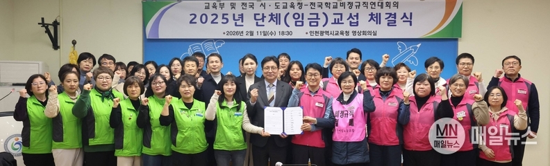 [매일뉴스] 인천광역시교육청은 2월 11일 교육부 및 전국 17개 시·도교육청, 전국학교비정규직연대회의(이하 ‘학비연대’)와 ‘2025년 단체(임금)교섭 협약’을 체결했다.