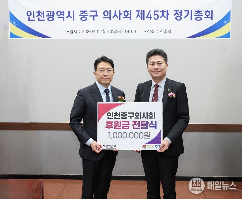 한편, 성금 전달식은 지난 20일 신포동에서 개최된 ‘2026년 중구의사회 제45차 정기총회’ 현장에서 진행됐다.