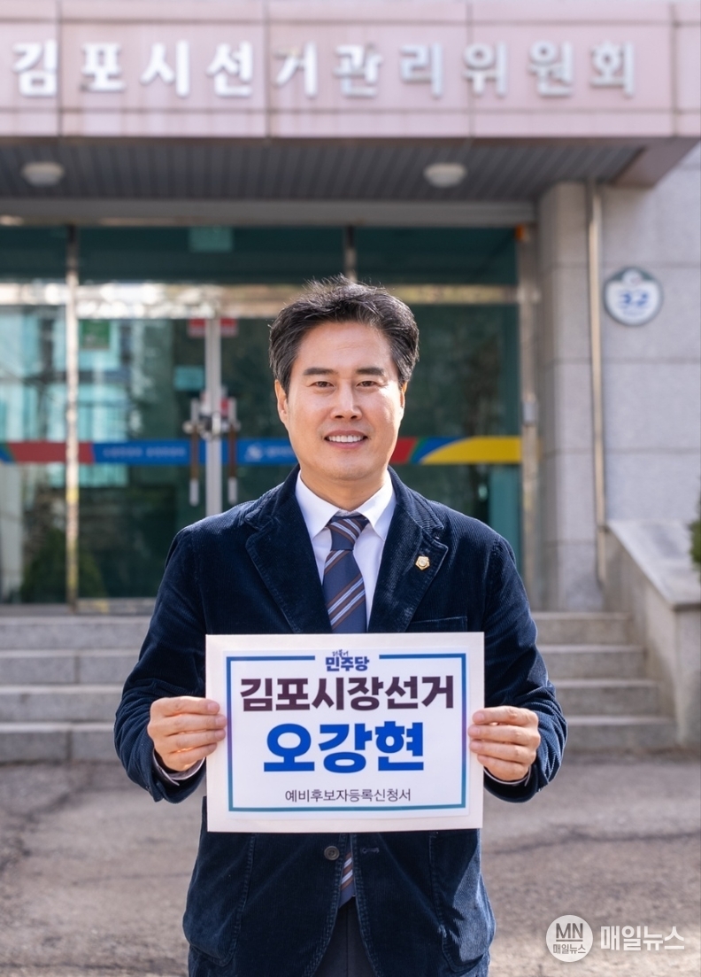 (매일뉴스=김포) 조종현 기자 = 더불어민주당 소속 오강현 김포시의원(재선, 전 김포시의회 부의장)이 23일 오후 1시, 김포시선거관리위원회를 찾아 제9회 전국동시지방선거 김포시장 예비후보 등록을 마치고 본격적인 선거전에 돌입했다.