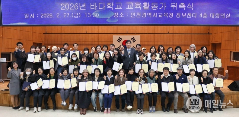 [매일뉴스] 인천광역시교육청(교육감 도성훈)은 2월 27일 시교육청 대회의실에서 2026년 바다학교 운영의 시작을 알리는 ‘바다학교 교사 위촉식’을 개최했다.