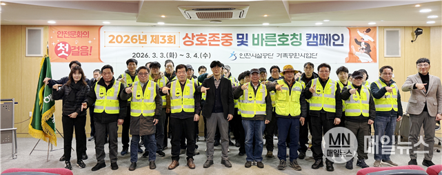 [매일뉴스] 인천시설공단(이사장 김재보) 가족공원사업단은 지난 3일, 기간제근로자 40여 명의 현장 배치에 맞춰 안전한 근무 환경 조성을 위한 「2026년 제3회 상호 존중 및 바른 호칭 캠페인」을 실시했다.