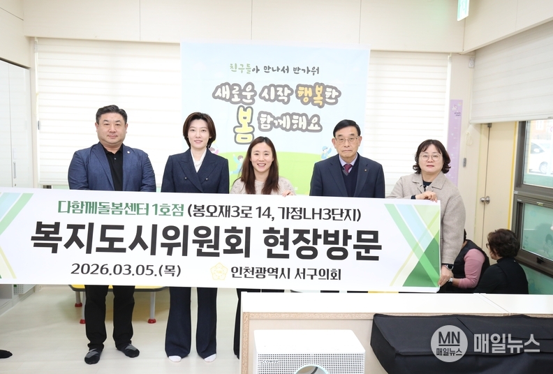 [매일뉴스] 인천 서구의회 복지도시위원회(위원장 장문정)는 지난 5일 관내 초등 돌봄의 거점 역할을 하고 있는 ‘다함께돌봄센터 1호점’을 방문해 운영 현황을 점검하고 현장의 목소리를 들었다.