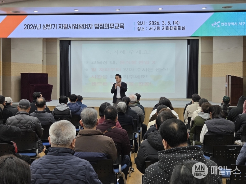 [매일뉴스] 인천 서구(구청장 강범석)는 지난 5일 자활사업 참여자 250여 명을 대상으로 ‘2026년 상반기 법정의무교육’을 실시했다고 밝혔다.
