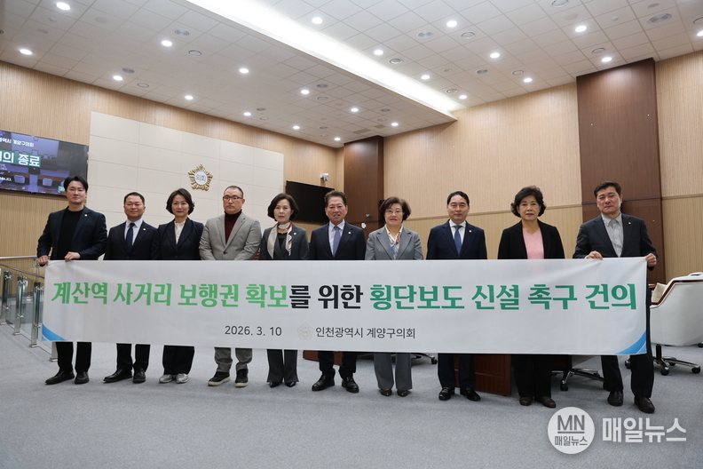 [매일뉴스] 인천 계양구의회 조양희 의원(더불어민주당, 다 선거구)이 대표 발의한 계산역 사거리 전방향 횡단보도 설치 촉구 건의안이 제264회 임시회 2차 본회의에서 채택됐다.