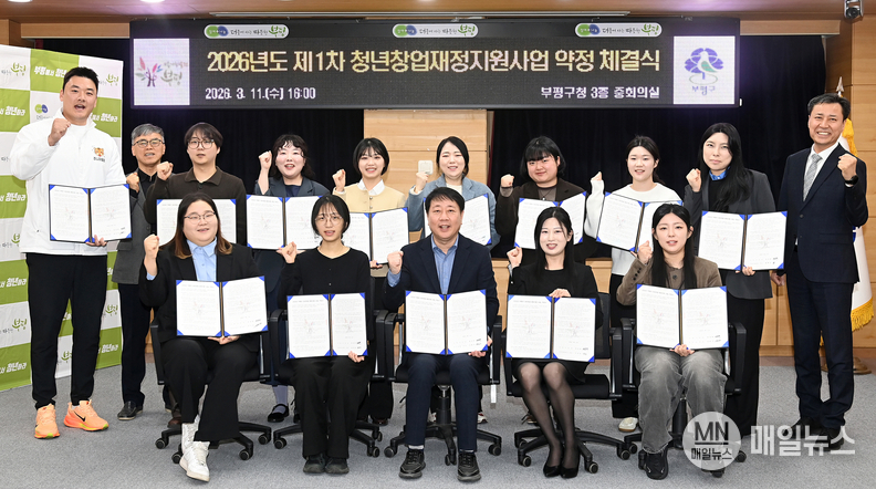 [매일뉴스] 부평구는 지난 11일 올해로 8년 차를 맞이한 ‘청년창업 재정지원 사업’ 선정자 13명과 지원 약정을 체결했다고 밝혔다.