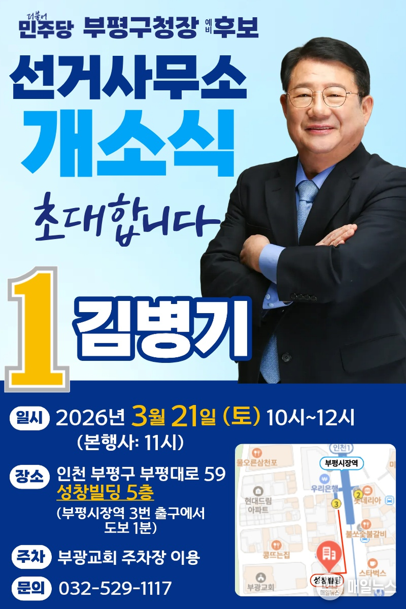 개소식에 앞서 진행된 매일뉴스와의 인터뷰에서 그는 출마 배경과 함께 부평구의 주요 현안, 향후 정책 구상 등을 설명하며 “부평 경제를 살리는 실천형 구청장이 되겠다”고 밝혔다.