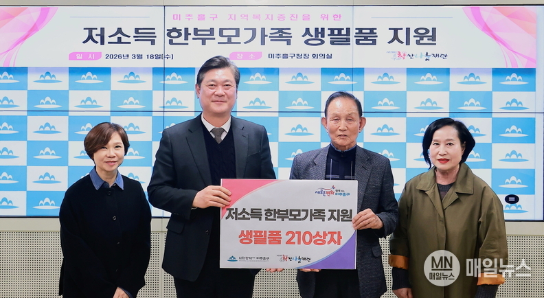 [매일뉴스] 인천 미추홀구(구청장 이영훈)는 18일 학산나눔재단(이사장 김영길) 지정후원금을 활용해 관내 저소득층 한부모가족을 위한 ‘생필품 꾸러미 지원 사업’을 추진했다고 밝혔다.