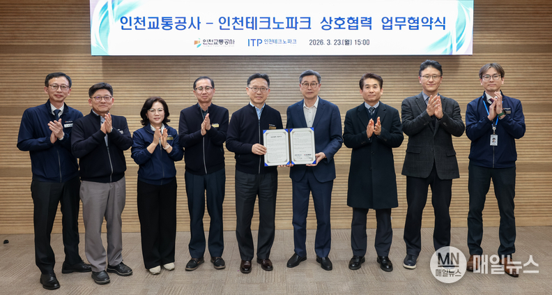 [매일뉴스] 인천교통공사(사장 최정규)는 23일 인천테크노파크(원장 이주호)와 영상 콘텐츠 분야 상호협력을 위한 업무협약을 체결했다고 밝혔다.