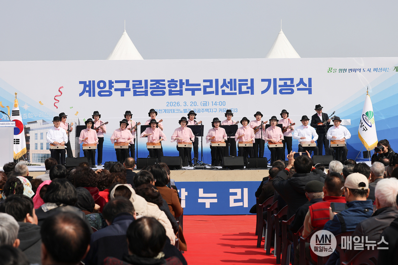 [매일뉴스] 인천 계양구 동양노인문화센터(센터장 김은희)는 지난 3월 20일 진행된 계양구립종합누리센터 기공식에서 노인일자리사업단 ‘행복누리 예술단’의 축하공연을 선보였다.
