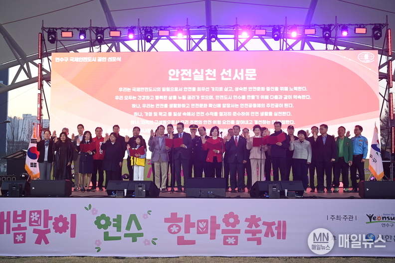 행사는 2026 새봄맞이 연수한마음 축제와 연계해 열렸으며 ▲국제안전도시 인증 영상 상영, ▲자매도시 축하 메시지, ▲공인협정서 서명 및 공인패 전달, ▲안전실천 선서 및 퍼포먼스 순으로 진행됐다.