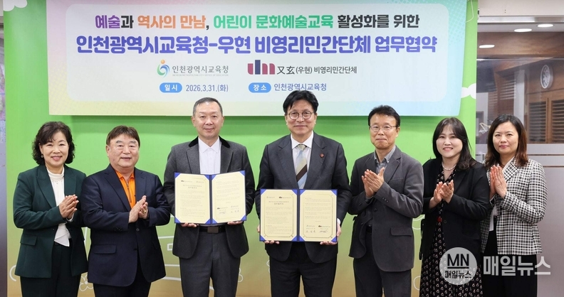 [매일뉴스] 인천광역시교육청(교육감 도성훈)은 지난 31일, 비영리민간단체 ‘우현’과 어린이 문화예술교육 활성화 및 인천 문화유산 계승 확대를 위한 업무협약을 체결했다.