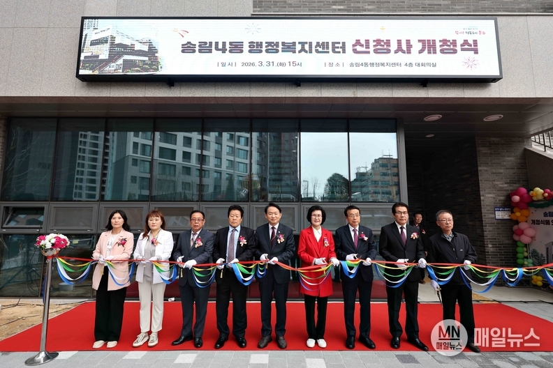 [매일뉴스] 인천 동구(구청장 김찬진)는 지난달 31일 주민 중심 행정서비스 제공과 복지 기능 강화를 위해 송림4동 행정복지센터 신청사 개청식을 개최했다고 밝혔다.