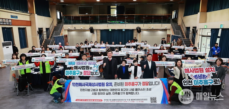 [매일뉴스] 인천 미추홀구(구청장 이영훈)가 ‘인천해사국제상사법원(이하 해사법원)의 미추홀구 유치’를 향한 42만 구민의 압도적인 의지를 확인하며 유치 추진에 박차를 가하고 있다고 7일 밝혔다.