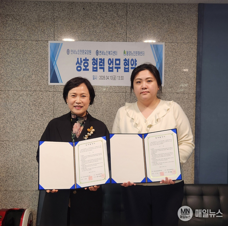 [매일뉴스] 인천시 계양구 동양노인문화센터(센터장 김은희)는 지난 10일 연세노인복지센터·노인전문요양원(시설장 신선영)과 노인일자리사업 추진 및 노인복지 증진을 위한 업무협약을 체결했다.
