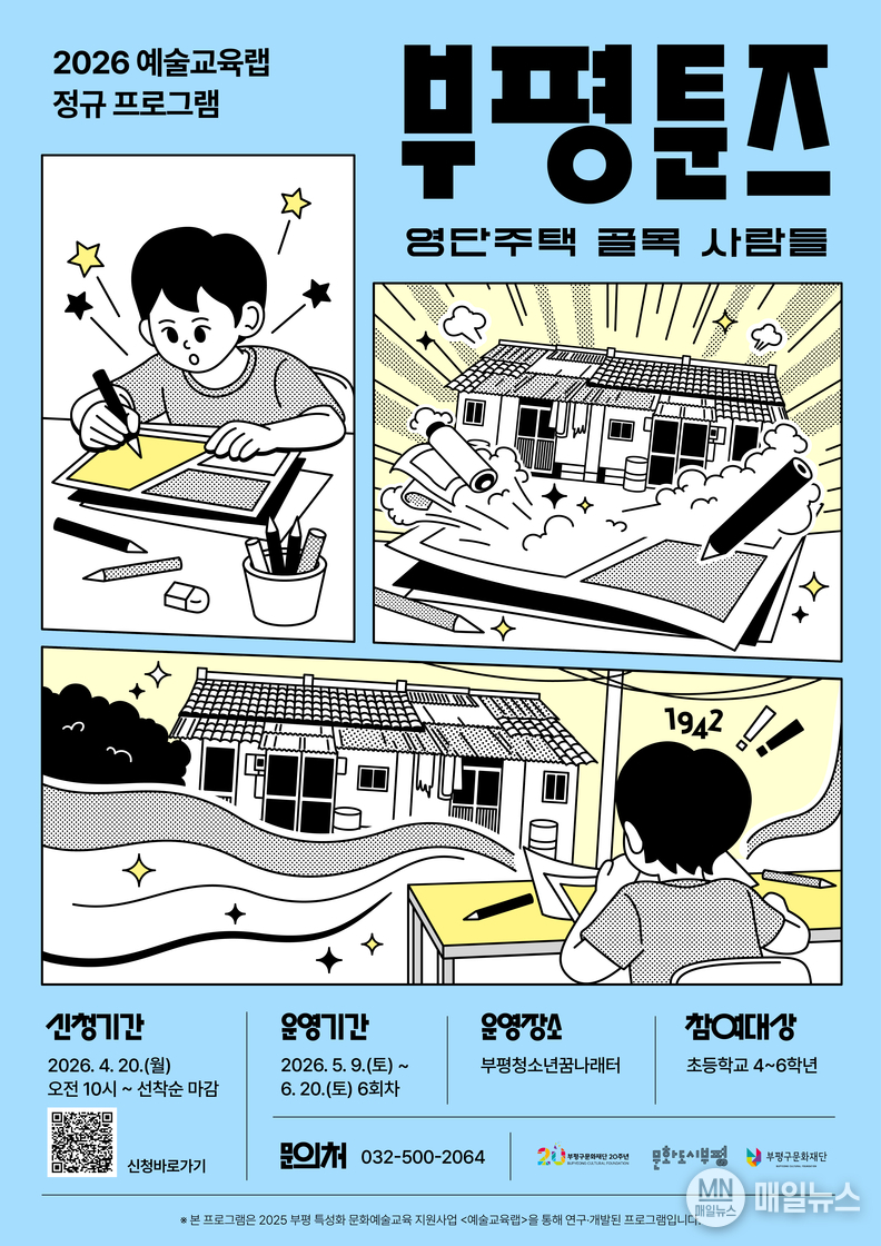 참여 대상은 초등학교 4~6학년이며, 교육 신청은 20일 오전 10시부터 부평구문화재단 누리집(www.bpcf.or.kr)을 통해 가능하다.