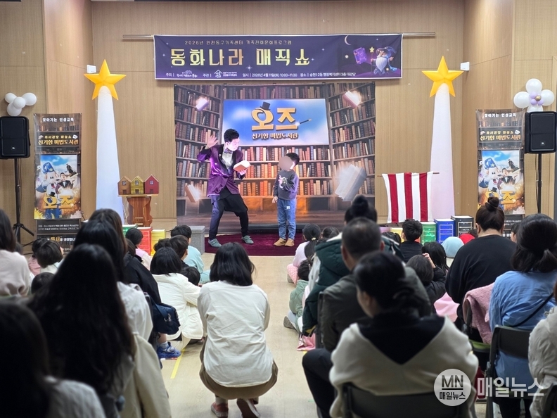‘동화나라 매직쇼’는 4월 12일~18일까지 진행되는 2026년 독서주간을 맞아 책을 읽는 재미와 독서에 관심을 가질 수 있도록 스토리텔링형 매직쇼로 진행되었으며, 자녀와 부모가 함께 즐기는 프로그램을 통해 가족친화적인 문화를 조성하고자 마련됐다.