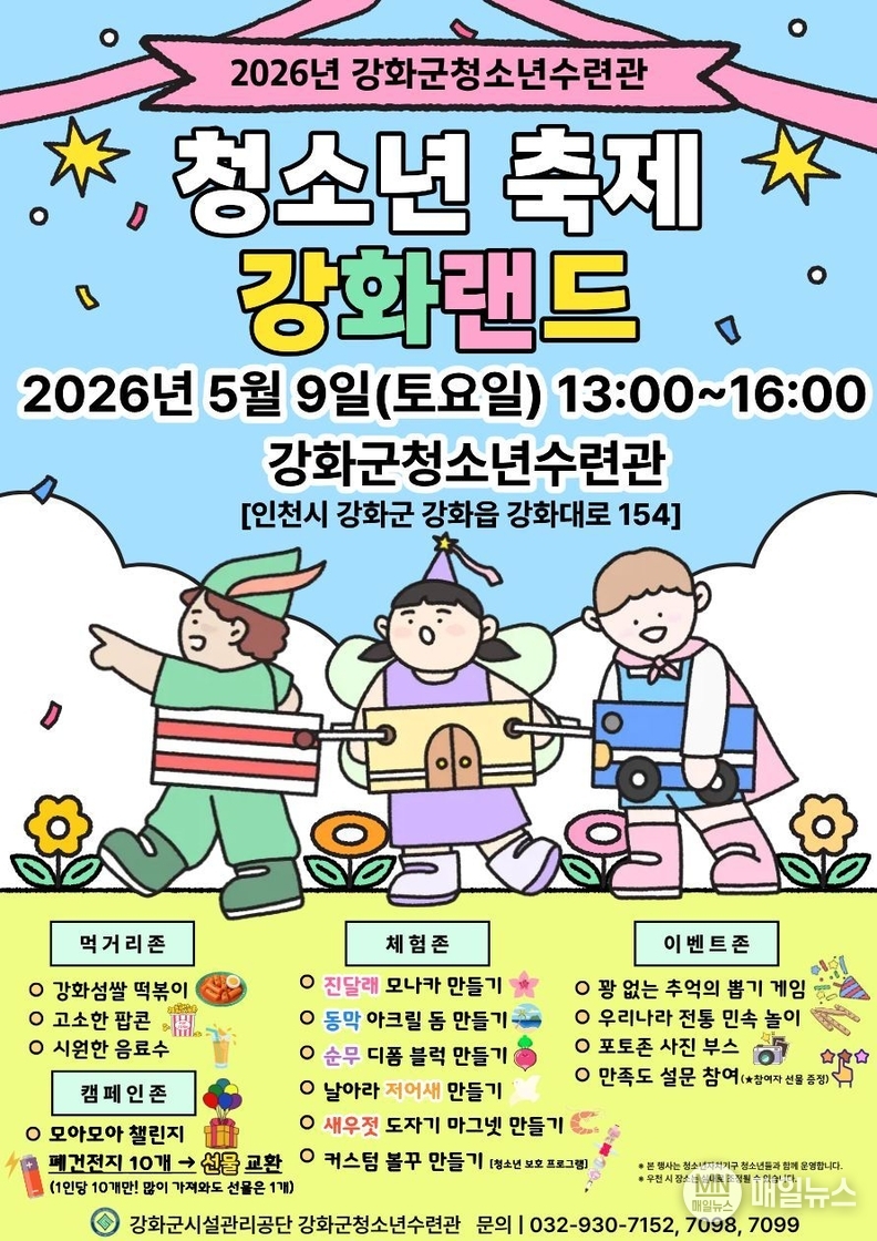 강화군청소년수련관이 오는 9일, 5월 ‘청소년의 달’을 맞아 청소년과 지역 주민이 함께 즐길 수 있는 청소년 축제 「강화랜드」를 개최한다.