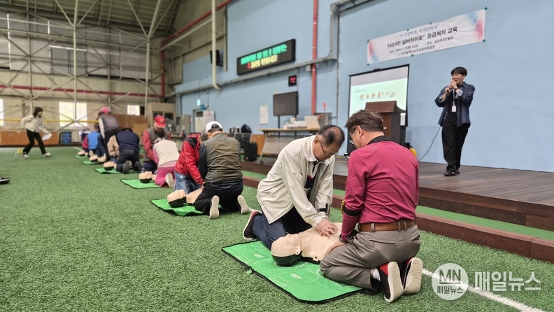이 교육은 이론교육, 가슴압박 및 AED 사용 실습을 병행하는 체험형 프로그램 등으로 구성됐으며 체육시설 특성상 고령 이용자 비율이 높고 돌발 상황 발생 가능성이 큰 점을 고려해 현장 대응력을 높이는 데 중점을 두었다.