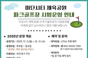 [매일뉴스] 인천시 중구(구청장 김정헌)는 미단시티 체육공원 내에 ‘파크골프장’을 새로 조성하고, 오는 11월 2일부터 시범운영에 들어간다고 밝혔다. ‘미단시티 체육공원 파크골프장’은 남녀노소 누구나 쉽게 즐길 수 있는 생활 스포츠인 ‘파크골프’를 통해 구민들의 건강과 여가 증진을 도모하고자 새롭게 조성된 체육시설이다. 이번 시범운영은 정식 개장 전 시설 안전성과 운영 적정성을 면밀하게 점검하고, 실제 이용객들의 의견(개선·보완점 등)을 수렴해 시설 운영 방향에 반영함으로써, 향후 안정적 운영을 도모하는 데 목적을 뒀다. 시범운영 기간은 오는 11월 2일부터 12월 31일까지다. 운영일은 매주 화요일부터 일요일까지 총 6일이며, 운영시간은 오전 8시부터 오후 5시까지다. 운영 횟수는 일 4회차로, 회차별 인원은 72명이며 전화 예약으로 이용할 수 있다. 이번 시범운영 기간에는 전액 무료로 시설 이용이 가능하다. 단, 잔디의 원활한 활착 등을 고려해 해당 기간에는 인천 중구에 거주하는 주민으로 이용 대상을 한정해 운영이 이뤄진다. 이용을 원하는 주민은 반드시 인천 중구 거주를 증명할 수 있는 신분증이나 등본 등 증빙자료를 지참해야 하며, 반드시 사전 예약을 해