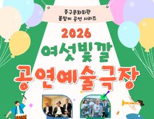[매일뉴스] (재)인천중구문화재단(이사장 김정헌)은 시민과 함께하는 중구문화회관 봄맞이 공연 시리즈 ‘2026 여섯빛깔 공연예술극장’을 오는 4월부터 5월까지 총 5회에 걸쳐 선보인다고 밝혔다. ‘2026 여섯빛깔 공연예술극장’은 음악과 거리예술이 어우러진 프로그램으로, 누구나 쉽게 즐길 수 있는 문화 경험을 제공하고자 기획됐다. 먼저 자유공원 일원에서 펼쳐질 4월 프로그램은 축제장 인근에서 자유롭게 관람할 수 있는 버스킹 형태로 진행되며, 지역성과 대중성을 갖춘 실력파 밴드 ‘경인고속도로’와 ‘오뮤오’가 무대를 선보일 예정이다. 이어, 5월에는 영종 씨사이드파크 일원에서 국내외 유수 아동극제 입상작을 중심으로 한 거리극 공연도 마련된다. 특히 서커스, 코미디, 마술 등 다양한 장르가 결합된 참여형 공연으로, ‘231쇼’, ‘벌룬퍼포머 클라운 진’, ‘신우주’가 출연해 유쾌한 퍼포먼스를 선보일 예정이다. 재단 관계자는 “이번 봄맞이 공연 시리즈는 시민들이 일상에서 공연예술을 접할 수 있도록 기획된 프로그램”이라며 “지역 예술가와 시민이 함께 호흡하는 열린 공연으로 자리매김하길 기대한다”라고 밝혔다. 한편, 5월에는 가정의 달을 맞아 가족 단위 관객을 위한 공