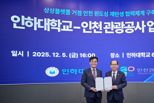 [매일뉴스] 인천관광공사(사장 유지상)는 지난 5일 인하대학교(총장 조명우)와 ‘상상플랫폼 거점 인천 원도심 활성화 협력체계 구축’을 위한 업무협약을 체결했다고 밝혔다. 이번 협약은 상상플랫폼을 거점으로 원도심의 가치 재창조를 위해 도시재생, 관광 활성화, 청년 활동 지원 등 공사와 대학이 협력 기반을 마련한 것으로, 지역 활성화 전략을 수행한다는 점에서 의미가 크다. 공사는 그동안 상상플랫폼을 인천 원도심 재생과 관광 활성화의 주요 추진 거점으로 활용해 왔다. 이번 협약을 계기로 인하대학교와 함께 문화·관광 콘텐츠 공동 개발, 원도심 가치 회복을 위한 실증·연구 협력, 지역 청년의 활동 기회 확대 등 다양한 분야에서 협력할 계획이다. 특히 인하대학교가 수행하는 지역혁신중심 대학지원체계(I-RISE) 사업과 연계해 관광 콘텐츠 발굴, MICE 분야 협력, 원도심 내 청년 유입 촉진 등도 추진한다. 이를 통해, 공사의 원도심 활성화 추진을 위한 노력에 시너지 효과를 높일 예정이다. 공사는 원도심의 기능 회복과 지역경제 활성화, 청년 유입 확대를 위한 중장기 협력 모델을 구축하고, 대학·유관기관·민간과의 네트워크를 지속적으로 확대해 상상플랫폼을 중심으로 한 사업