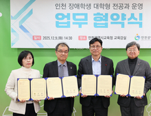 [매일뉴스] 인천시교육청(교육감 도성훈)은 9일 재능대학교 및 인하공업전문대학과 ‘장애학생 대학형 전공과 운영 업무 협약’을 갱신했다. 협약 갱신은 2022년부터 운영해 온 대학형 전공과의 성과를 바탕으로 2026년 이후에도 안정적인 직업교육 지원 체계를 유지하기 위한 것으로 인천청인학교–재능대학교, 인천연일학교–인하공업전문대학이 참여한다. 재능대학교 협약 기간은 2026년 1월 1일부터 2027년 12월 31일, 인하공업전문대학 협약 기간은 2026년 3월 1일부터 2028년 2월 29일이다. 두 학교는 각 40명의 학생을 대상으로 대학 기반 교육과정, 현장 실습, 상담 등을 연계해 운영해 왔다. 교육청은 이번 협약으로 교육청·대학·특수학교 간 공동 운영 체계를 강화하고, 전문 교수진과 대학 실습 시설을 활용한 고품질 직업교육, 학생 특성에 기반한 맞춤형 진로 설계, 지역사회 연계 취업 지원을 지속 추진할 계획이다. 대학은 실습 중심 전문교육을, 특수학교는 생활지도와 학습 지원을 담당해 학생 맞춤형 통합 지원 체계를 확대한다. 도성훈 교육감은 “대학형 전공과는 장애학생의 진로 선택 폭을 넓히는 중요한 모델”이라며 “학생 한 명 한 명이 자신의 속도대로 성장