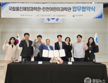 [매일뉴스] 인천시설공단(이사장 김재보) 인천어린이과학관은 지난 27일 국립울진해양과학관(관장 김외철)과 함께 미래 과학 인재 양성을 위한 업무협약을 체결했다. <심해부터 우주까지>, <과학마블 탐구여행> 등의 공동 연구기획 순회전을 성공적으로 개최한 인연으로 이어진 두 기관은 협약을 통해 ▲과학 콘텐츠 연구기획 및 기획전시 공동 개최 ▲문화 행사 및 교육프로그램 개발 ▲정보, 콘텐츠 및 인적‧물적 자원공유 등의 긴밀한 협력을 추진하기로 뜻을 모았다. 이번 협약을 통해 인천어린이과학관의 어린이 대상 전시·교육 기법과 국립울진해양과학관의 전문적인 해양과학 인프라의 결합으로 수도권과 동해안을 잇는 새로운 형태의 과학 교육모델을 구축하는 계기가 될 것으로 기대되며, 두 기관은 실무 협의체를 구성해 올해 공동 연구기획 전시 프로젝트 기획에 본격 착수할 예정이다. 안영춘 인천어린이과학관장은 “특화된 해양과학 콘텐츠를 제공할 수 있는 접점이 마련되어 기쁘다”라며, “앞으로도 미래 세대를 위한 과학교육 발전을 위해 적극 협조하겠다”라고 밝혔다.