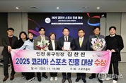 [매일뉴스] 김찬진 인천 동구청장이 지난 18일 서울 종로구 동아미디어센터에서 열린 ‘2025년 코리아 스포츠진흥 대상’리더 부문에서 대상을 수상했다. ‘코리아 스포츠진흥 대상’은 스포츠동아가 주최하고 문화체육관광부, 대한체육회, 국민체육진흥공단 등이 후원하는 상으로 ▲리더 ▲브랜드 ▲스포츠 장비 및 시설 ▲스포츠 의학 ▲생활체육 ▲영스포츠 ▲전통체육 ▲스페셜 등 분야별로 선정해 시상하고 있다. 리더 부문에서 수상한 김찬진 동구청장은 생활체육 진흥을 통한 주민 건강 증진 및 삶의 질 향상에 이바지 한 부분에서 높은 평가를 받았다. 김찬진 청장은 민선 8기 동안 ▲인천시 군구 최초 장애인체육회 설립 ▲동호인 생활체육대회 활성화 ▲체육회 및 장애인체육회 활성화 ▲주민 체육시설 관리 및 화도진스케이트장 운영 ▲여자태권도 및 유소년 축구단 활성화 ▲체육 분야 적극 행정으로 주민 화합 기여 등의 성과를 냈다. 김찬진 동구청장은 “동구는 구민 모두의 건강을 위해 인천시 군구 최초로 장애인 체육회를 설립 했다”며 “더 많은 시민들이 생활 체육의 즐거움을 경험하고 건강한 삶을 누릴 수 있도록 지원을 아끼지 않겠다”고 말했다. 한편, 동구는 중구 내륙과 통합돼 2026년 7